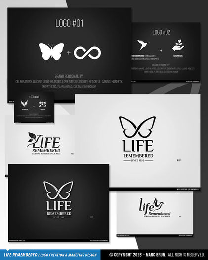 The butterfly infinity symbol became the heart of the identity, representing transformation, continuity, and the infinite connection between life and what comes after. The goal was to create a mark that feels respectful, hopeful, and timeless.